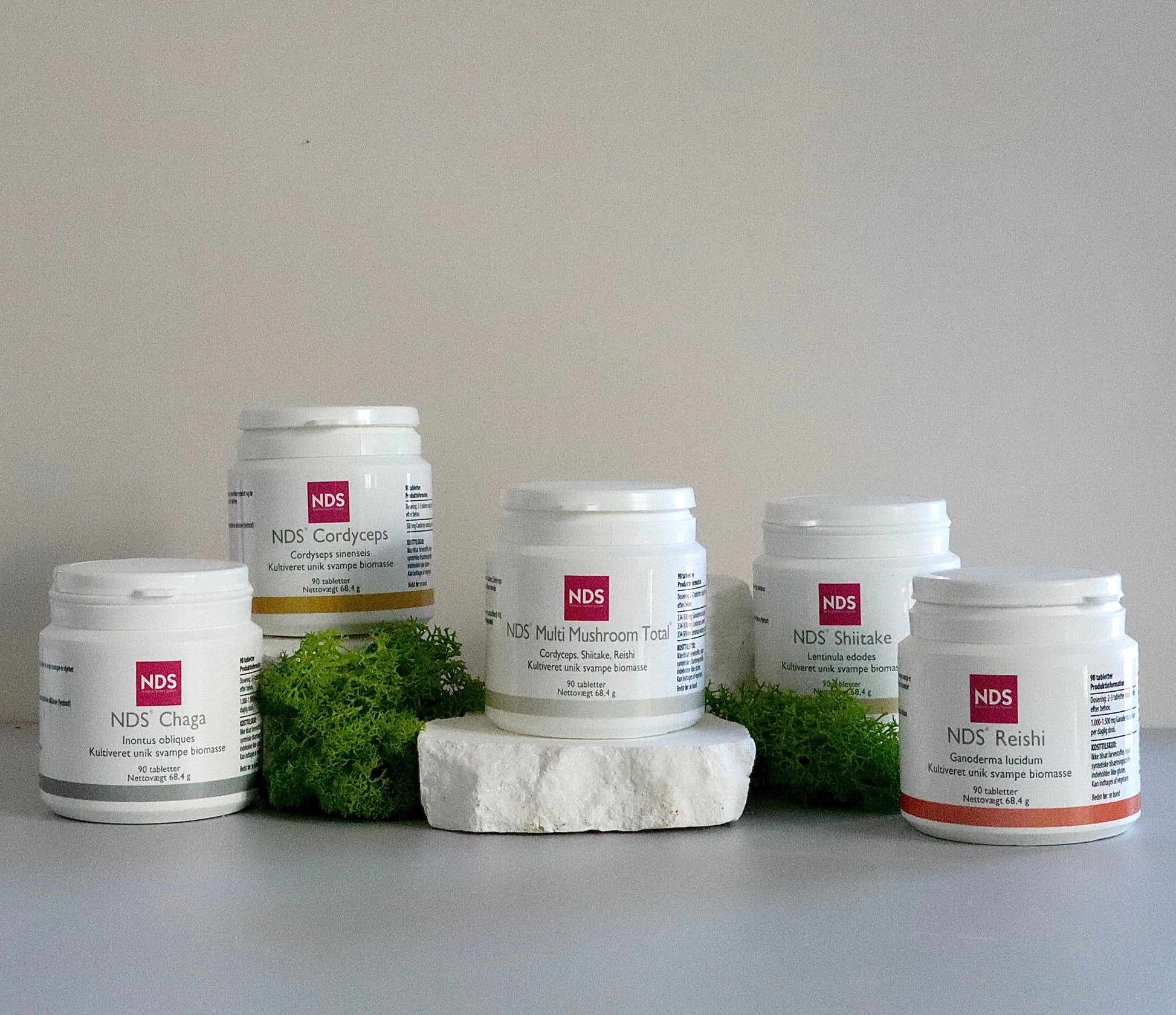 NDS® svampetilskud er alle lavet af den intakte, komplette frugtlegemebiomasse. Den komplette biomasse er afgørende, når det kommer til dannelsen af aktive stoffer og enzymer.